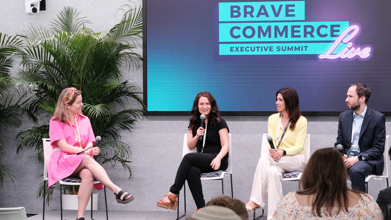BRAVE COMMERCE Podcast hosts, Sarah Hofstetter and Rachel Tipograph take the stage to share the latest insights from the industry and what to expect in the new Era of Intelligent Commerce.